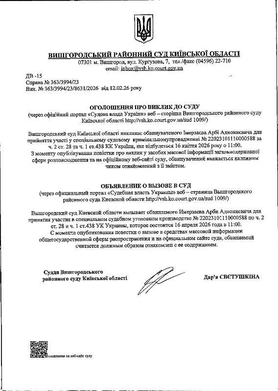 Оголошення про виклик до суду у справі № 363/3994/23