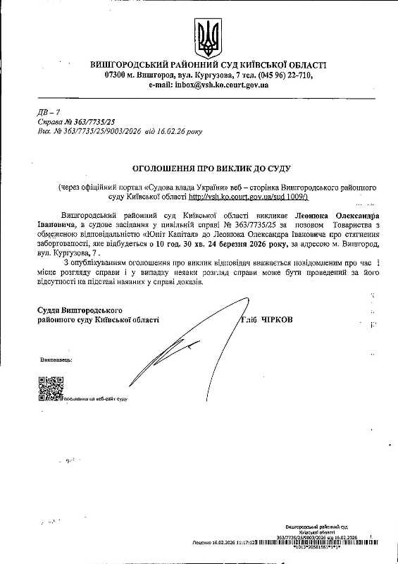 Оголошення про виклик до суду у справі № 363/7735/25