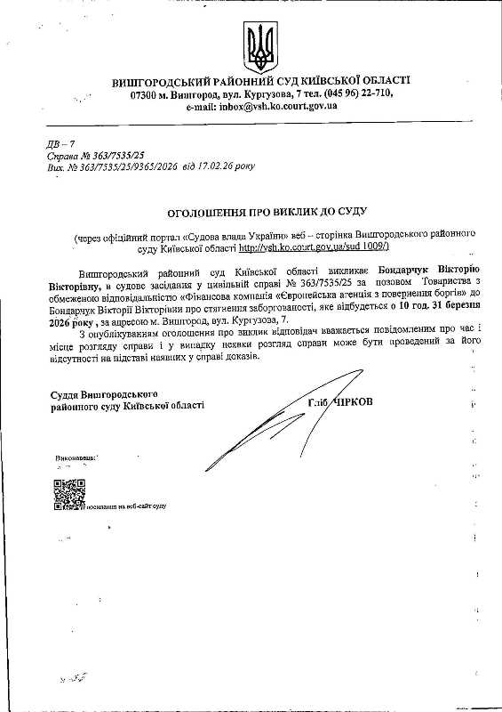 Оголошення про виклик до суду у справі № 363/7535/25