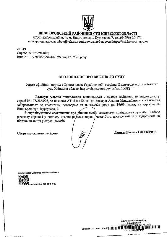 Оголошення про виклик до суду у справі № 173/2888/25