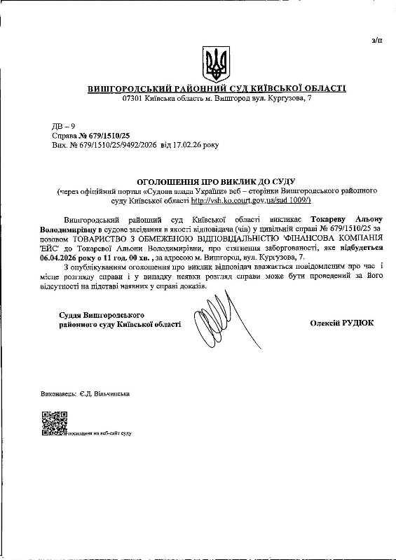Оголошення про виклик до суду у справі № 679/1510/25
