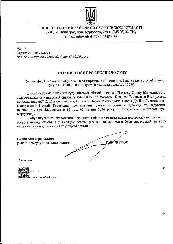 Оголошення про виклик до суду у справі № 756/9080/25