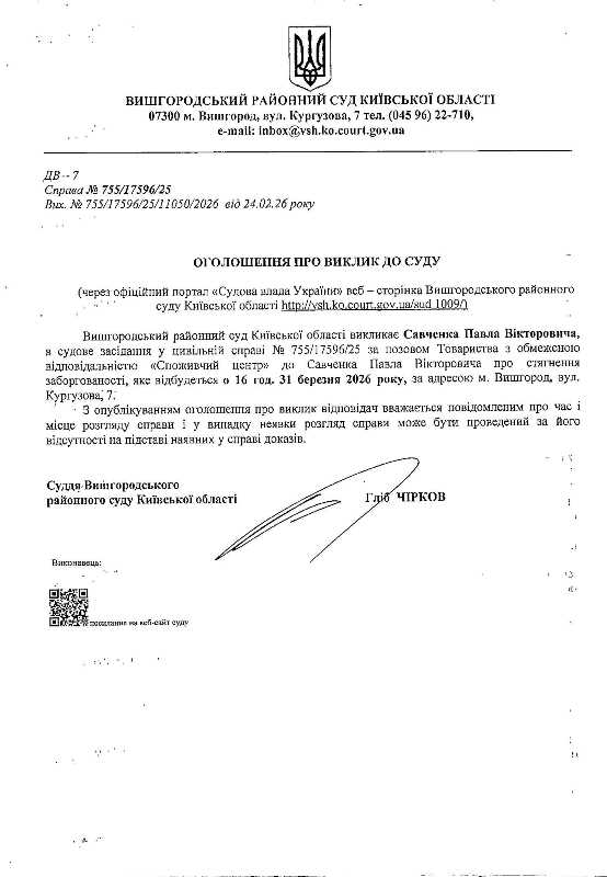 Оголошення про виклик до суду у справі № 755/17596/25