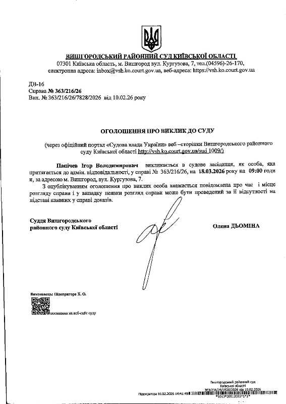 Оголошення про виклик до суду у справі № 363/216/26
